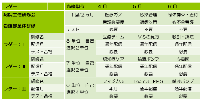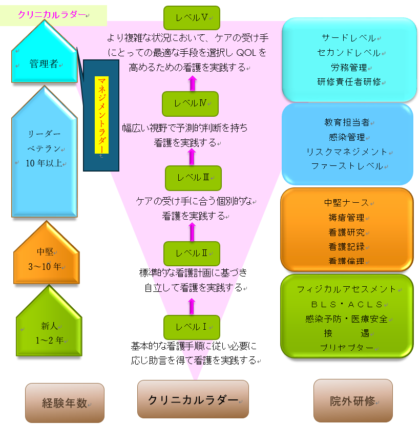 1.看護部職員の資質の向上と、自己開発を援助し業務に対する意欲を高めるとともに、その充実を図るための教育、研究、訓練を企画実施する