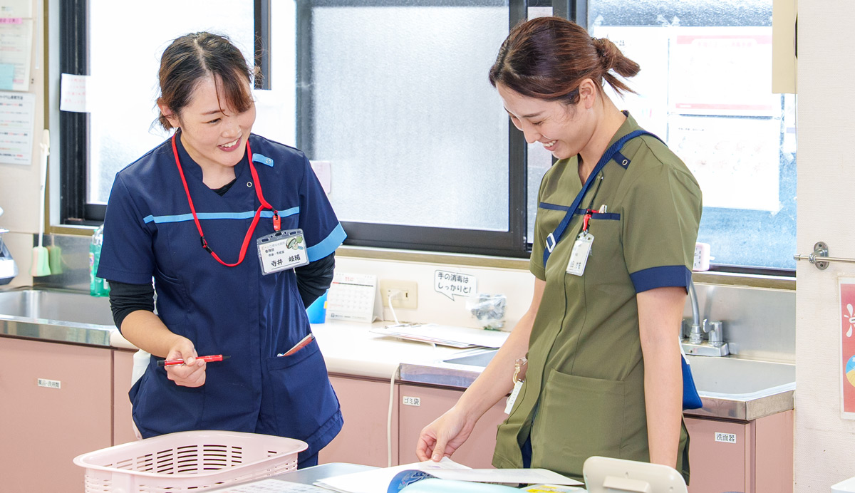 プリセプターシップを導入し入職者1名に対しプリセプターを1~2名配置し看護実践の中で指導教育を行いながら業務に従事します。